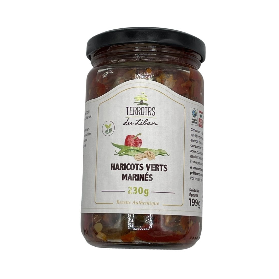 Préparés artisanalement par la PME familiale de Lalynn (voir l'histoire en pièce jointe), à partir de haricots verts frais marinés dans de l'huile et relevés aux poivrons rouges et aux noix selon une recette libanaise de caractère.