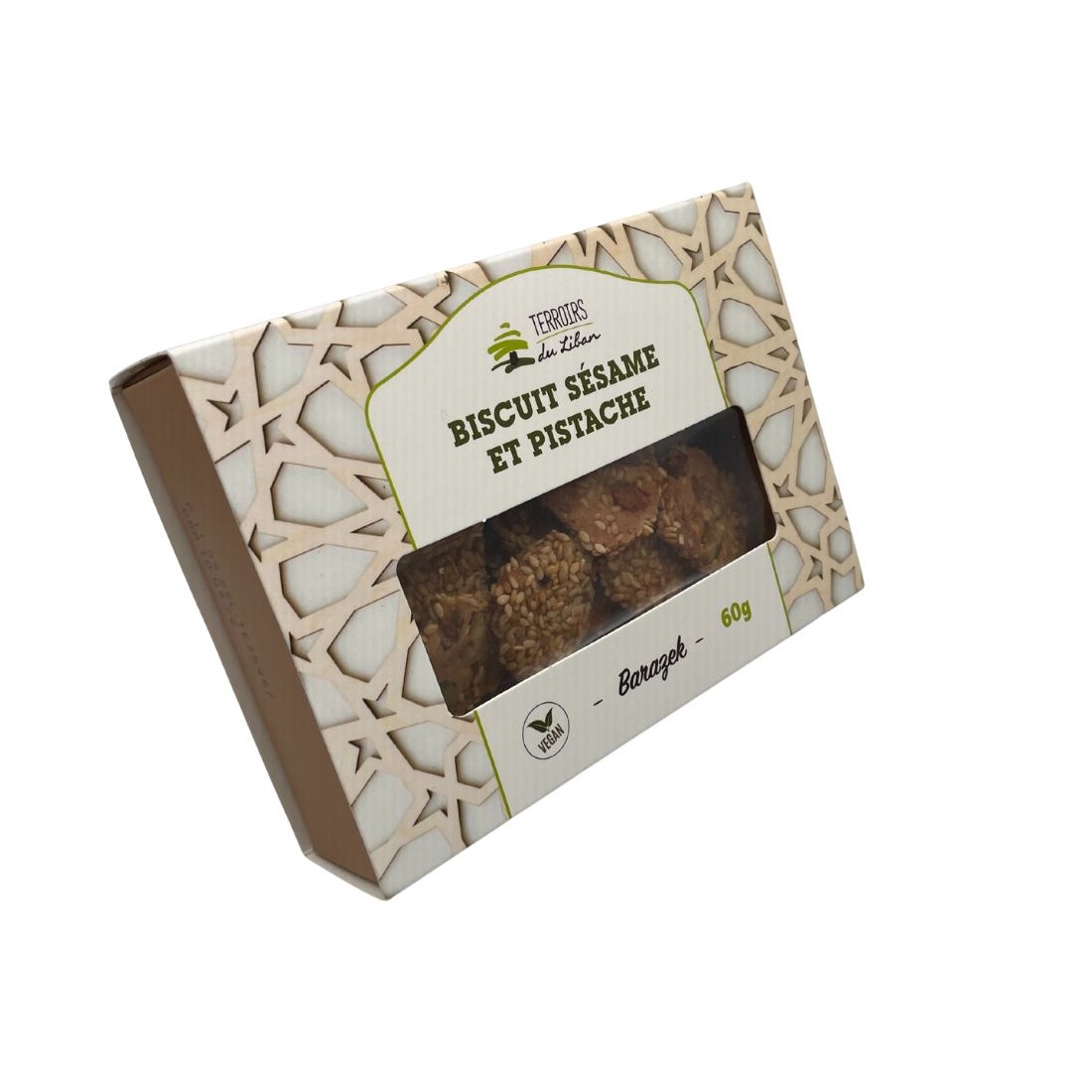 Préparés selon une recette artisanale inspirée du terroir libanais, ces biscuits au sésame et à la pistache sont idéaux pour accompagner le café, le thé ou pour une pause gourmande aux saveurs authentiques du Liban.